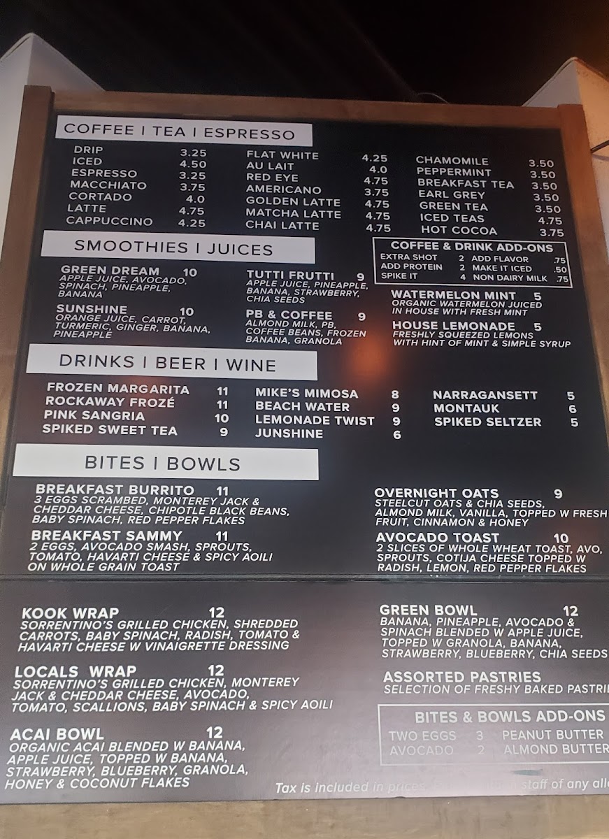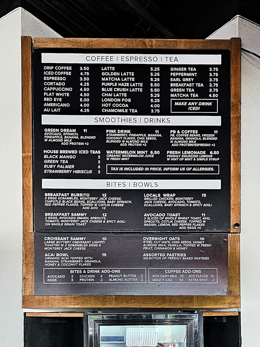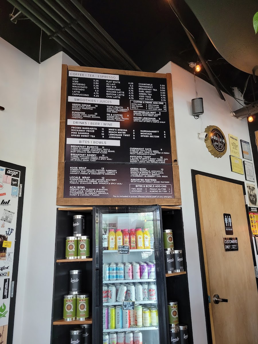 The menu at Locals Collective NYC offers a cozy yet vibrant selection, perfect for a morning boost or a quick snack. For coffee enthusiasts, the Drip Coffee and Iced Coffee provide classic options, while those looking for a richer experience can enjoy a Cafe Au Lait or an Espresso. For something a little more indulgent, try the Cortado, a smooth blend of espresso and milk. Smoothie lovers are in for a treat with refreshing choices like the Green Dream and Pink Drink, as well as the energizing PB & Coffee. The iced tea options, including the Strawberry Hibiscus Iced Tea and Black Mango Iced Tea, offer a fruity twist to quench your thirst. When it comes to bites, the Breakfast Burrito and Breakfast Sammy are hearty and satisfying, perfect for an energizing start to the day. The Croissant Sammy offers a buttery, savory option, while the Açaí Bowl and Avocado Toast are lighter but equally flavorful choices, ideal for those craving something fresh and wholesome. The variety of options ensures there’s something for everyone, whether you're stopping by for a quick coffee or a fulfilling meal.