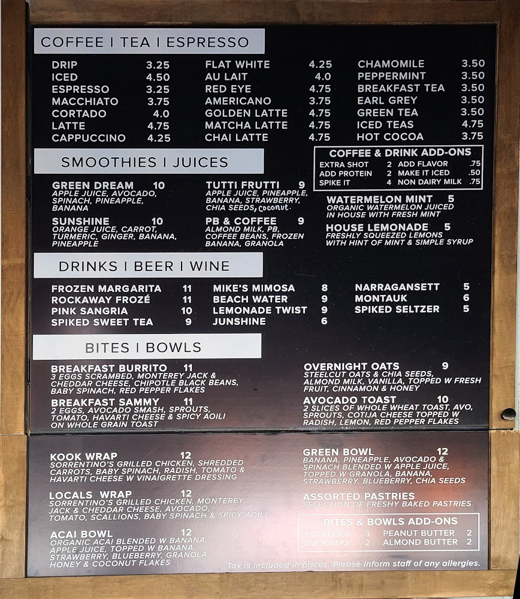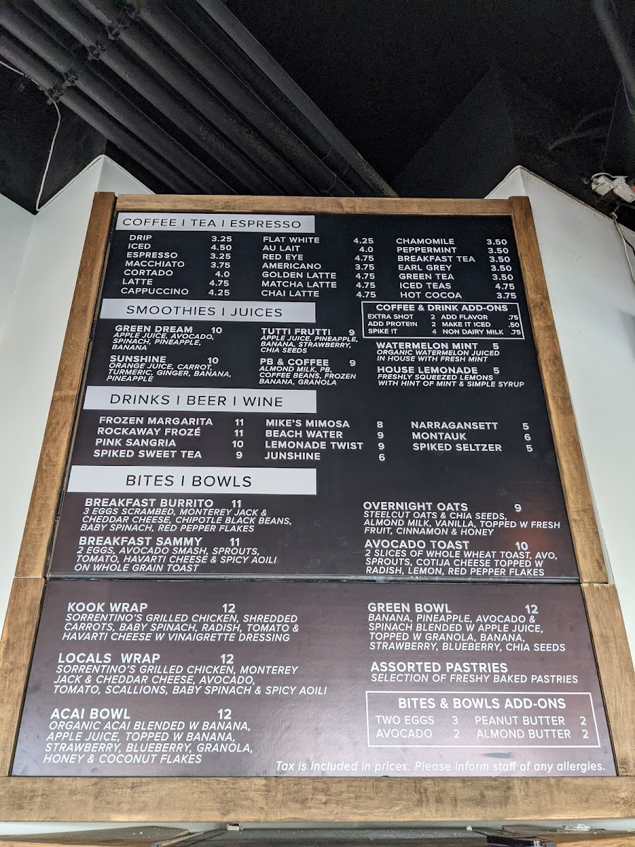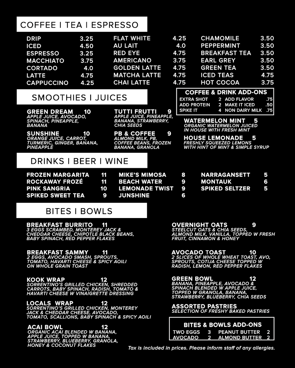 The menu at Locals Collective NYC offers a cozy yet vibrant selection, perfect for a morning boost or a quick snack. For coffee enthusiasts, the Drip Coffee and Iced Coffee provide classic options, while those looking for a richer experience can enjoy a Cafe Au Lait or an Espresso. For something a little more indulgent, try the Cortado, a smooth blend of espresso and milk. Smoothie lovers are in for a treat with refreshing choices like the Green Dream and Pink Drink, as well as the energizing PB & Coffee. The iced tea options, including the Strawberry Hibiscus Iced Tea and Black Mango Iced Tea, offer a fruity twist to quench your thirst. When it comes to bites, the Breakfast Burrito and Breakfast Sammy are hearty and satisfying, perfect for an energizing start to the day. The Croissant Sammy offers a buttery, savory option, while the Açaí Bowl and Avocado Toast are lighter but equally flavorful choices, ideal for those craving something fresh and wholesome. The variety of options ensures there’s something for everyone, whether you're stopping by for a quick coffee or a fulfilling meal.